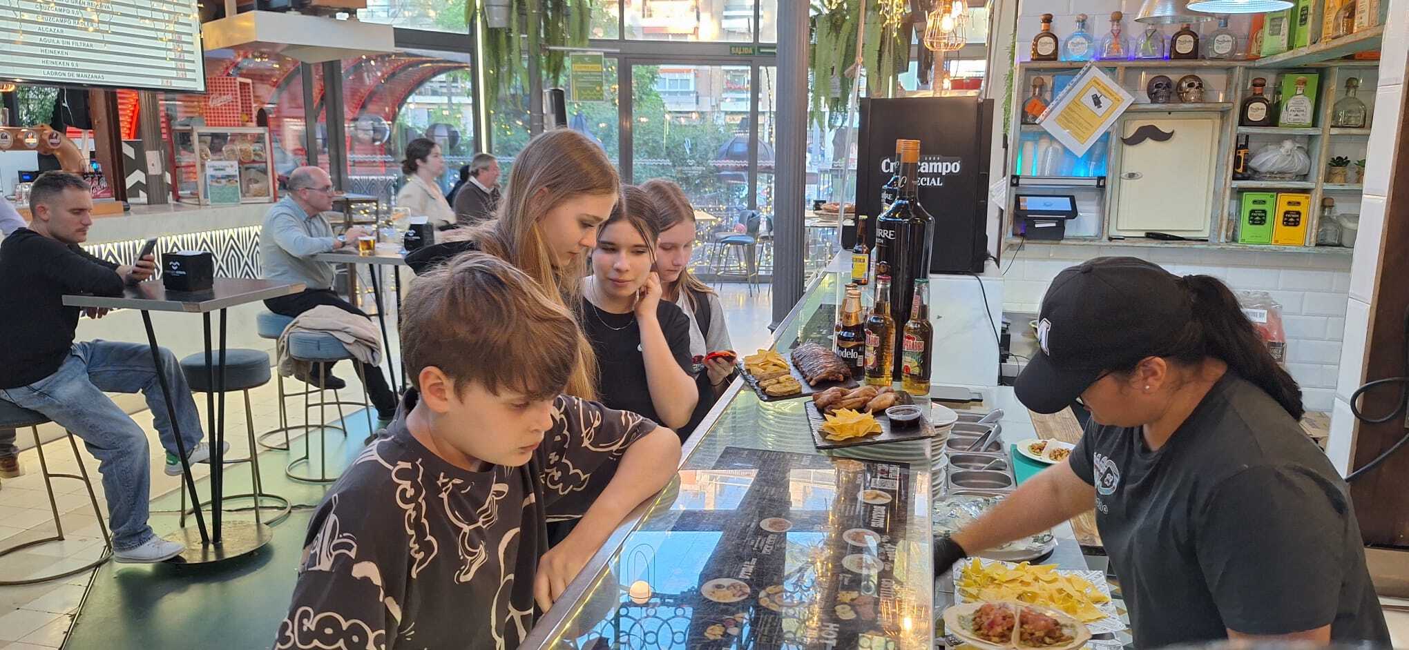 ), bakłażany z miodem (czyli słodko-słony hit wieczoru), salmorejo (chłodnik pomidorowy z jajkiem i szynką – ideał na hiszpańskie temperatury) oraz owoce morza, które niektórym skradły serca, a innych… lekko zaskoczyły