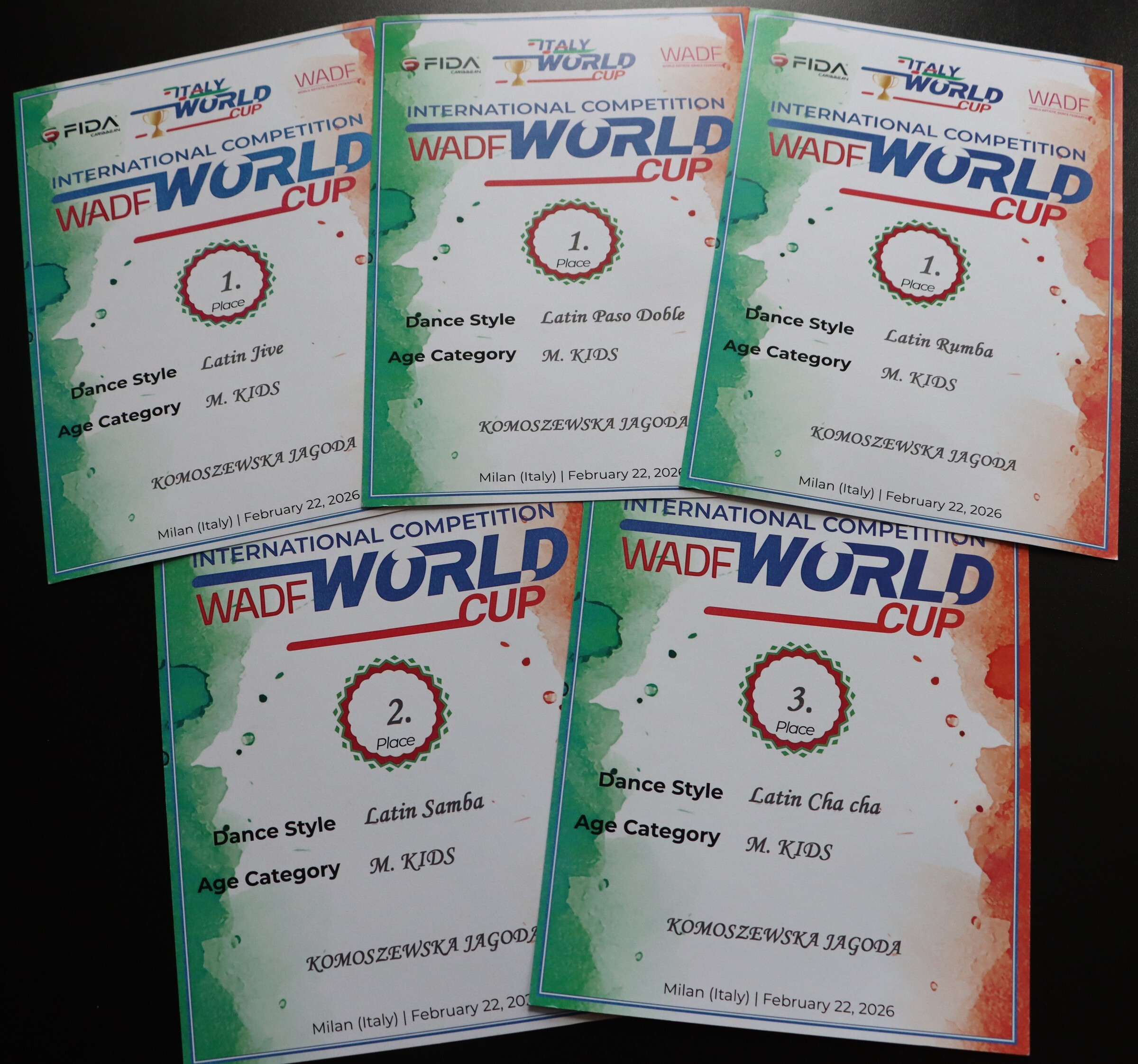 Jagoda wytańczyła trzy pierwsze miejsca w kategoriach Paso Doble, Jive i Rumba, a także II i III miejsce w Sambie oraz Cha-cha.