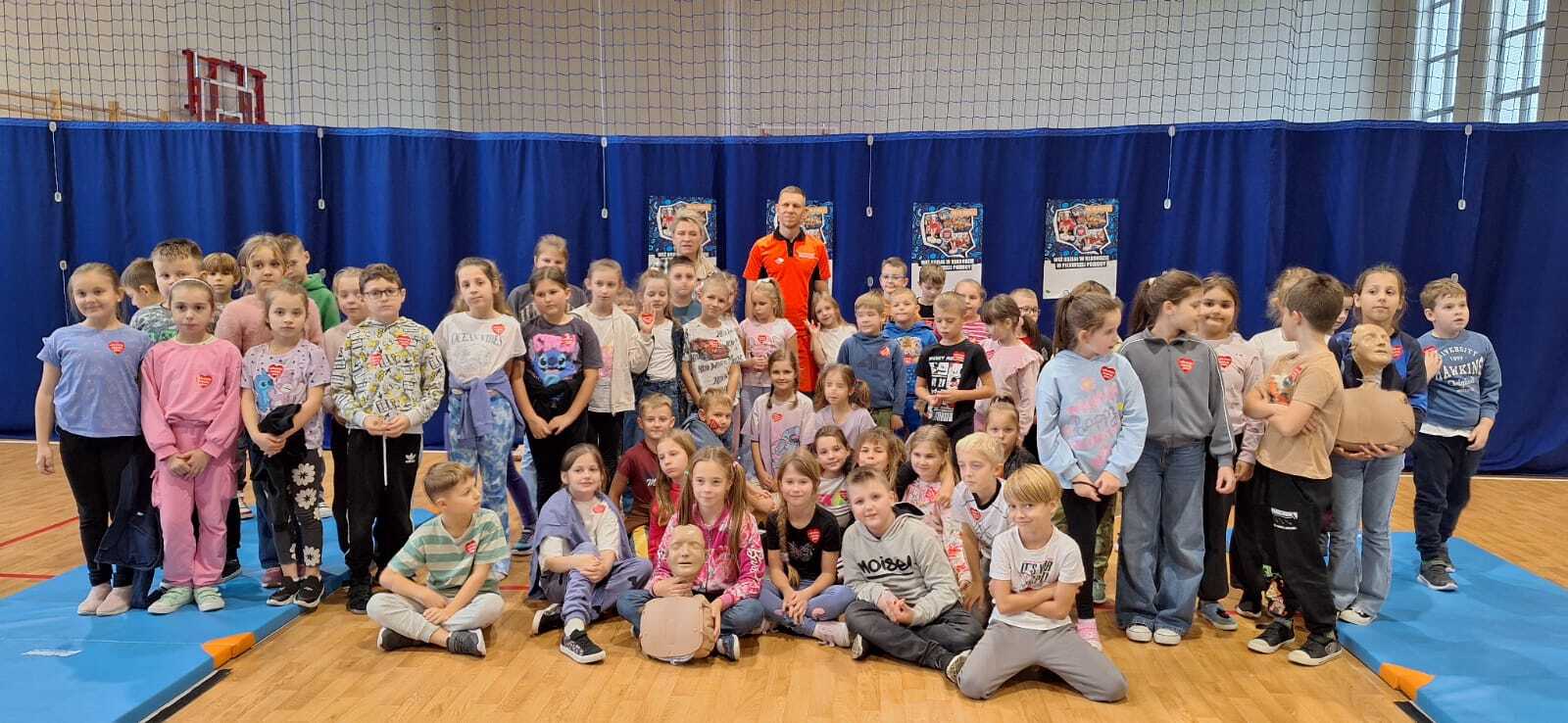 20 października 2025 r. odbyło się spotkanie z ratownikiem medycznym, który kolejny raz przypomniał dzieciom zasady bezpiecznego poruszania się na drodze i przeprowadził warsztaty z udzielania pierwszej pomocy.